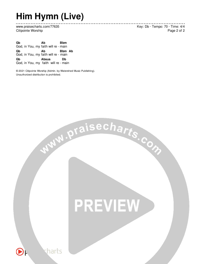 Him Hymn (Live) Chords PDF (Citipointe Worship)