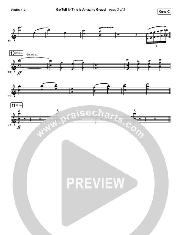 Download the Violin sheet music for Go Tell It (This Is Amazing Grace) by Life.Church Worship, from the album Gloria. This song was arranged by Grant Wall / Daniel Galbraith in the key of Bb, C.