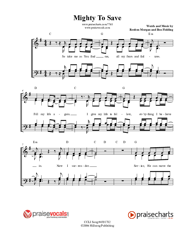 Mighty To Save Sheet Music PDF (PraiseVocals)