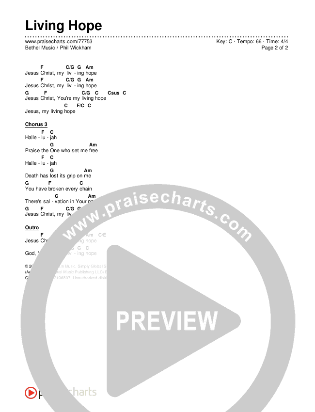 Download the PDF Chord Charts for Living Hope by Bethel Music / Phil Wickham, from the album Peace Vol II.