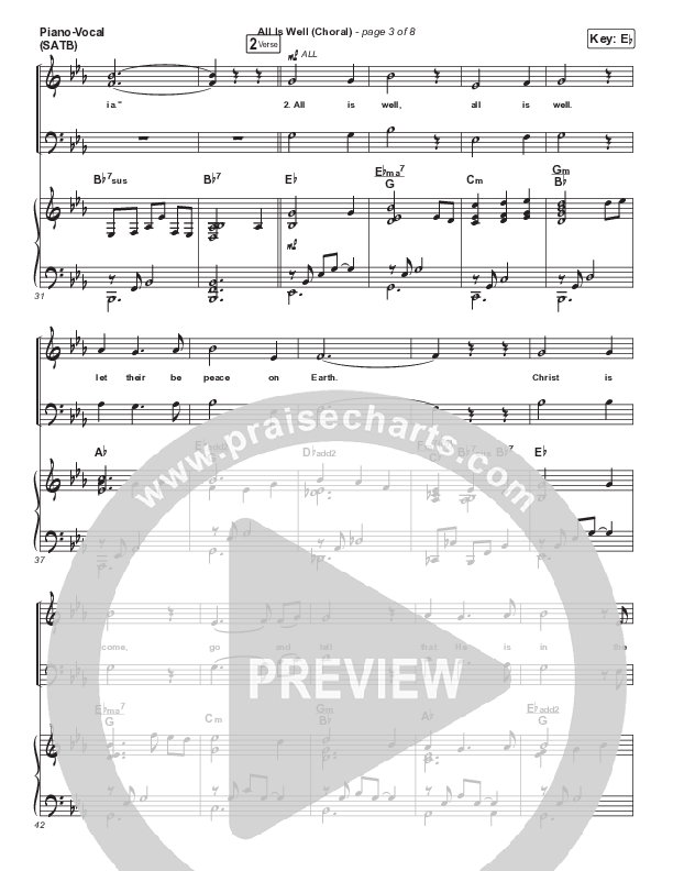 Download the sheet music for All Is Well (Choral Anthem SATB) by Michael W. Smith / Carrie Underwood / Arr. Luke Gambill, from the album The Spirit Of Christmas. This song was arranged by Luke Gambill / Daniel Galbraith in the key of Eb.