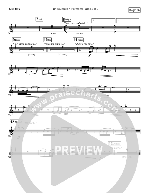 Firm Foundation (He Won't) (Live) Alto Sax Sheet Music PDF (Cody Carnes)