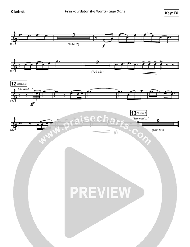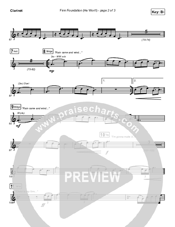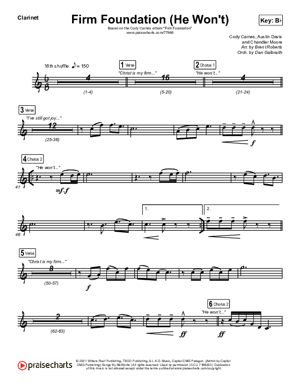 Firm Foundation (He Won't) (Live) Clarinet Sheet Music PDF (Cody Carnes)