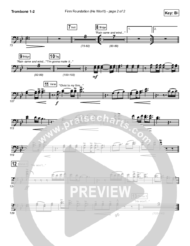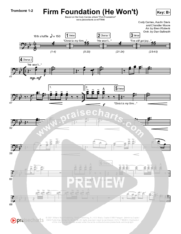 Firm Foundation (He Won't) (Live) Trombone Sheet Music PDF (Cody Carnes)