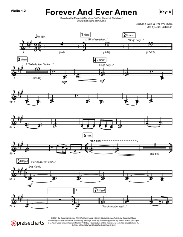 Download the Orchestration string parts for Forever And Ever Amen by Maverick City Music / Brandon Lake / Phil Wickham, from the album A Very Maverick Christmas. This song was arranged by Daniel Galbraith in the key of A, Ab.