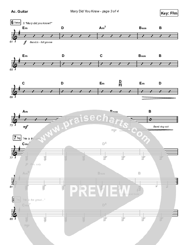 Download the Acoustic Guitar sheet music for Mary Did You Know by Maverick City Music / Lizzie Morgan / Chandler Moore, from the album A Very Maverick Christmas. This song was arranged by Daniel Galbraith in the key of F#m, Gm.