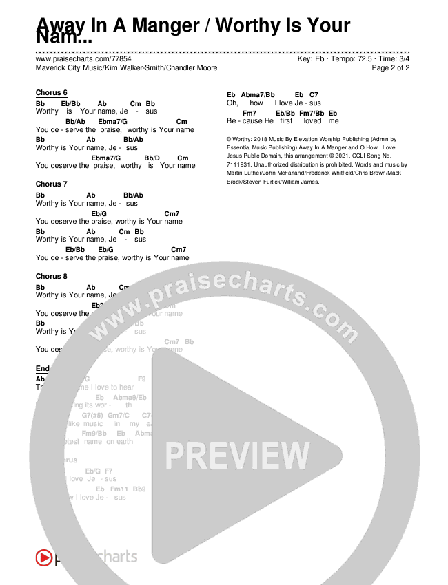 Away In A Manger / Worthy Is Your Name Chords PDF (Maverick City Music / Kim Walker-Smith / Chandler Moore)