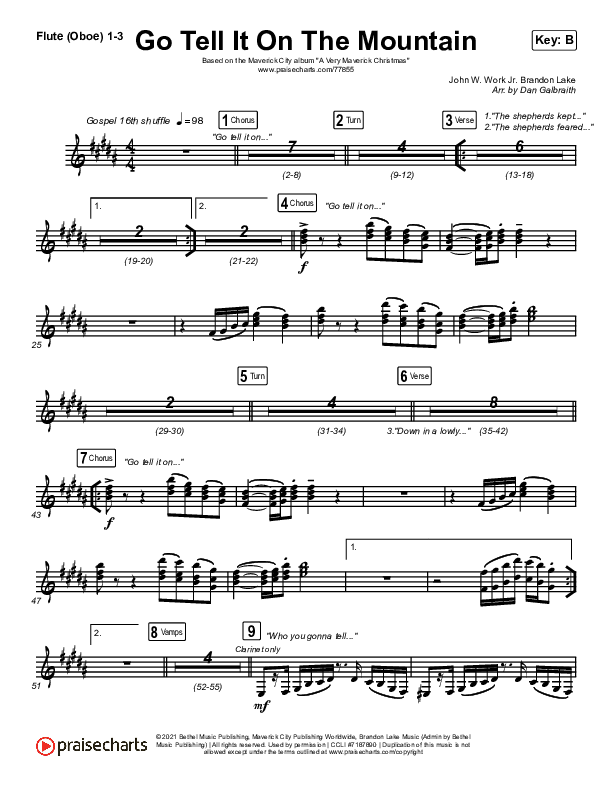 Download the Orchestration wind parts for Go Tell It On The Mountain by Maverick City Music / Melvin Chrispell III / Chandler Moore, from the album A Very Maverick Christmas. This song was arranged by Daniel Galbraith in the key of B, C.