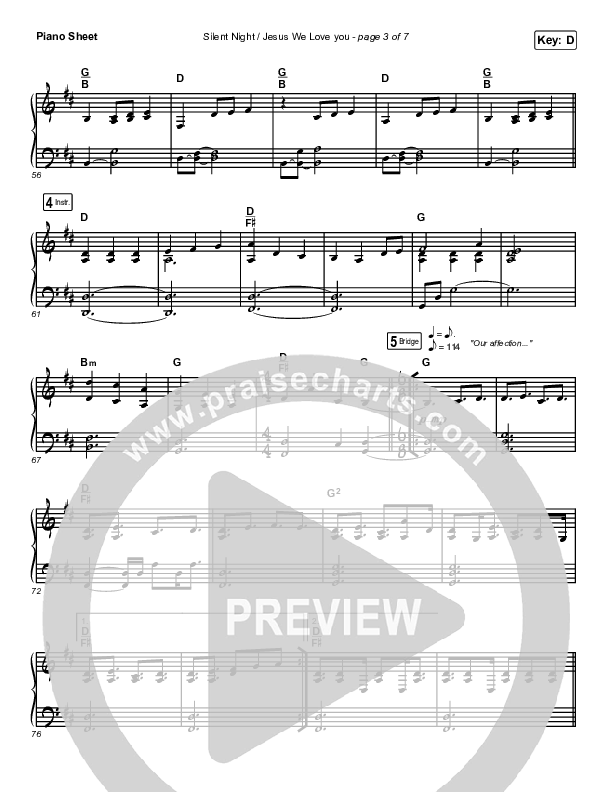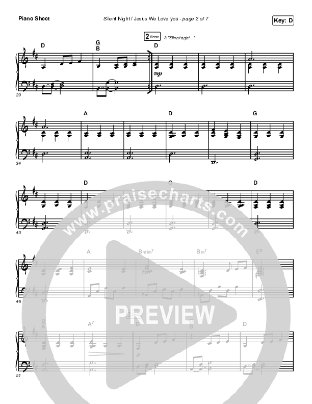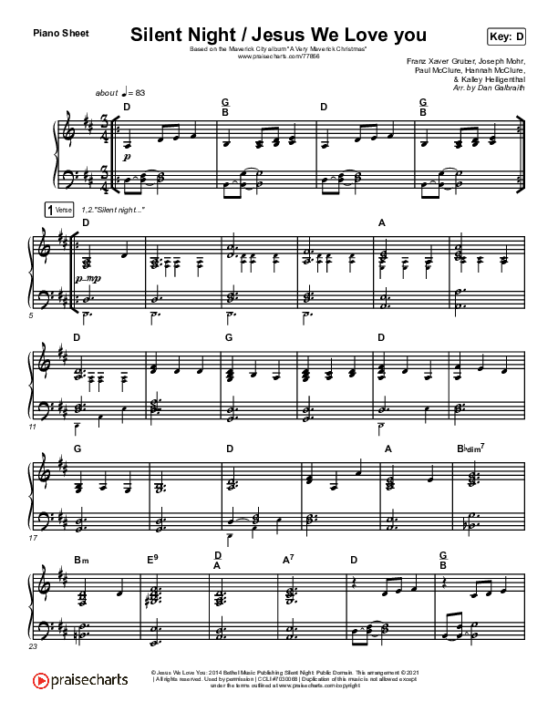 Download the piano sheet for Silent Night / Jesus We Love You by Maverick City Music / Brandon Lake / Phil Wickham / Kim Walker-Smith, from the album A Very Maverick Christmas. This song was arranged by Daniel Galbraith in the key of D, Eb.