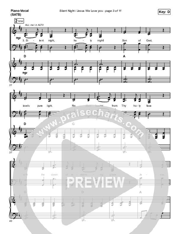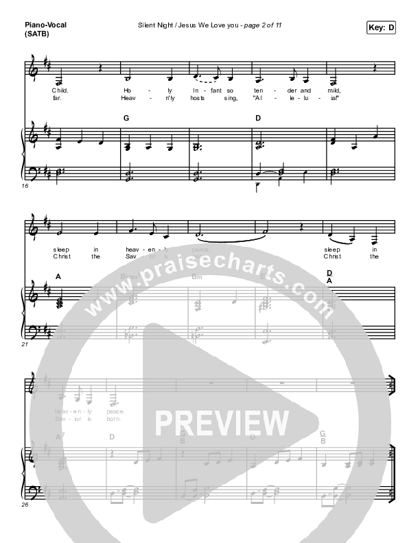 Download the sheet music for Silent Night / Jesus We Love You by Maverick City Music / Brandon Lake / Phil Wickham / Kim Walker-Smith, from the album A Very Maverick Christmas. This song was arranged by Daniel Galbraith in the key of D, Eb.