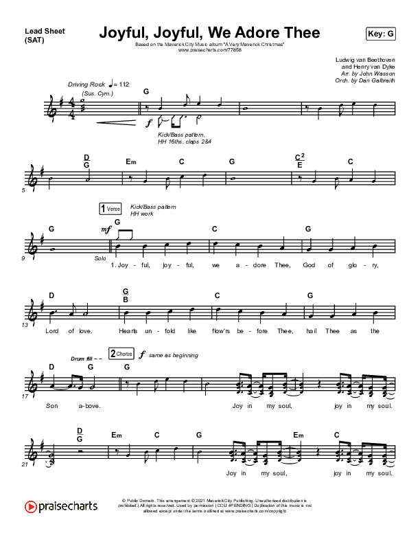 Download the sheet music for Joyful Joyful We Adore Thee by Maverick City Music / Ryan Ofei, from the album A Very Maverick Christmas. This song was arranged by John Wasson / Daniel Galbraith in the key of F, G.