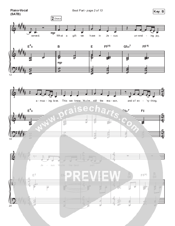 Download the sheet music for Best Part by Maverick City Music / Naomi Raine / Chandler Moore, from the album A Very Maverick Christmas. This song was arranged by Grant Wall in the key of B, Bb.