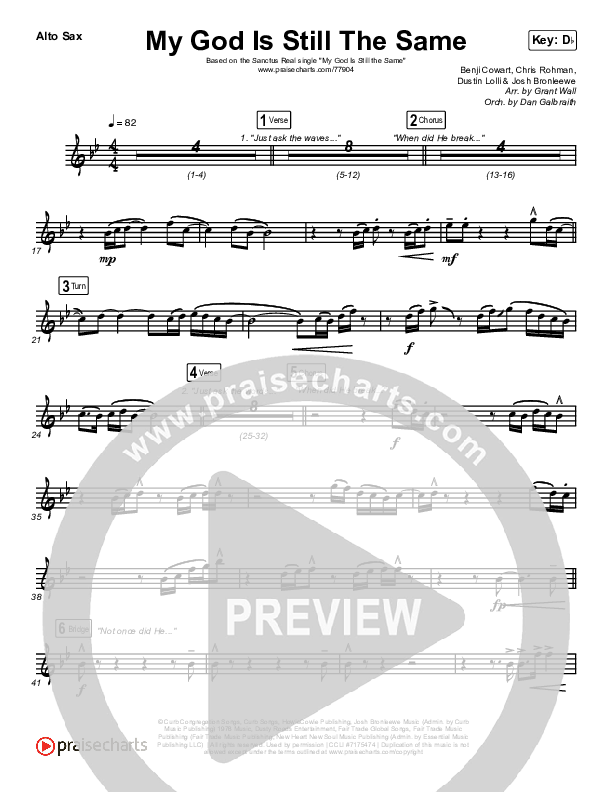 Download the AltoSax sheet music for My God Is Still The Same by Sanctus Real, from the album My God Is Still The Same. This song was arranged by Grant Wall / Daniel Galbraith in the key of C, Db.