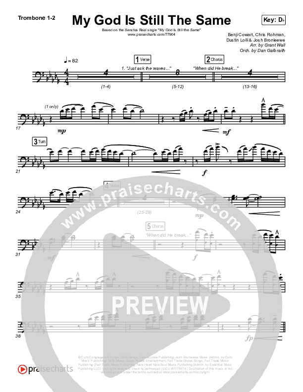 Download the Trombone 1,2 sheet music for My God Is Still The Same by Sanctus Real, from the album My God Is Still The Same. This song was arranged by Grant Wall / Daniel Galbraith in the key of C, Db.