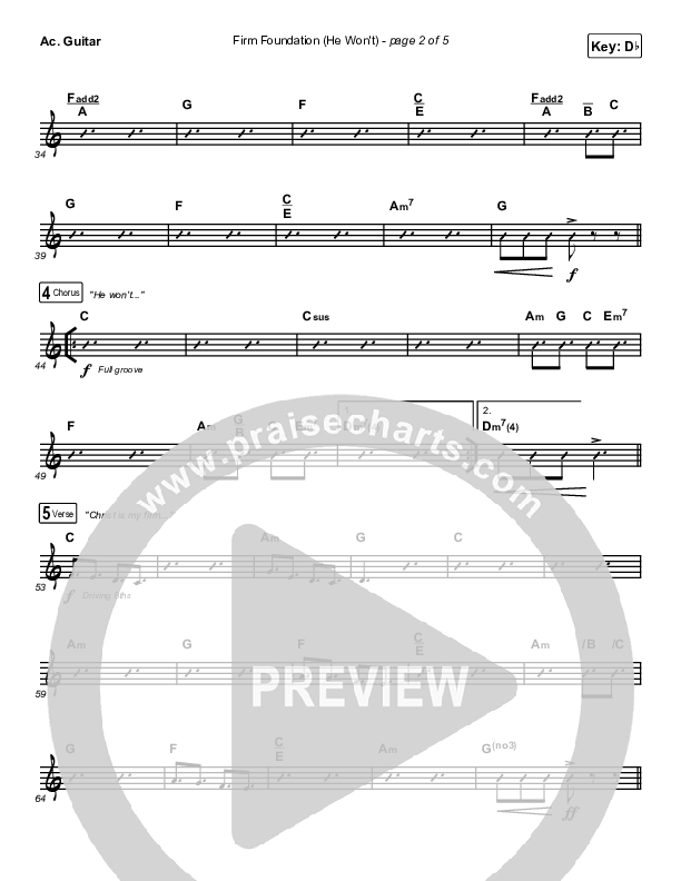 Firm Foundation (He Won't) (Live) Acoustic Guitar Sheet Music PDF (Cody Carnes / Chandler Moore / Maverick City Music)