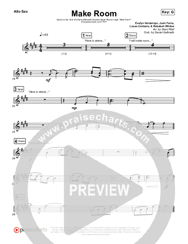 Download the AltoSax sheet music for Make Room by Meredith Andrews / Sarah Reeves / Chris McClarney, from the album Make Room. This song was arranged by Grant Wall in the key of Ab, E, G.