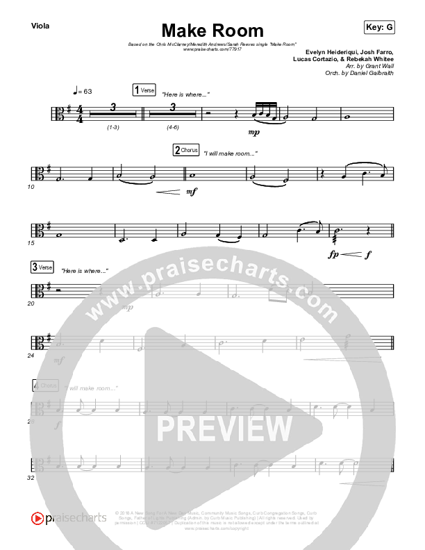 Download the Viola sheet music for Make Room by Meredith Andrews / Sarah Reeves / Chris McClarney, from the album Make Room. This song was arranged by Grant Wall in the key of Ab, E, G.