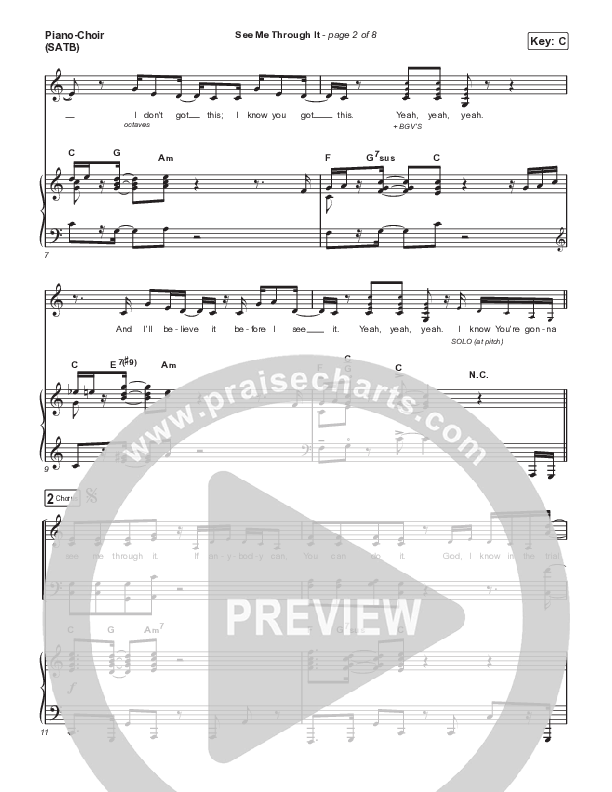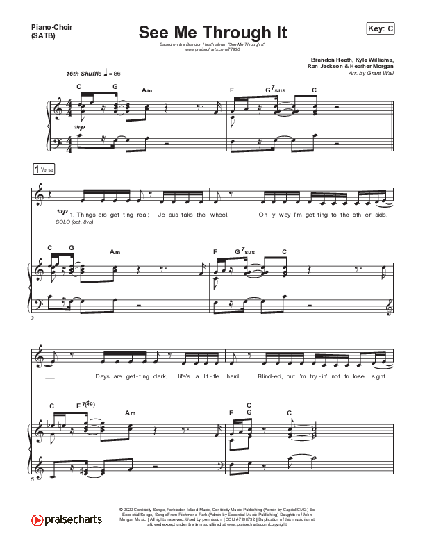 Download the sheet music for See Me Through It by Brandon Heath, from the album See Me Through It. This song was arranged by Grant Wall in the key of Bb, C.