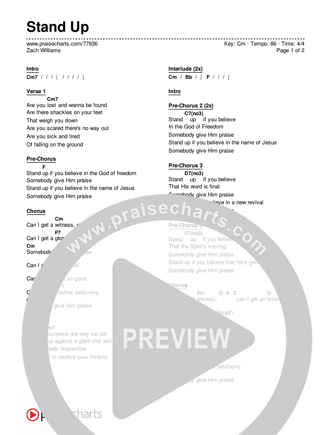 Download the PDF Chord Charts for Stand Up by Zach Williams, from the album Rescue Story (Deluxe).