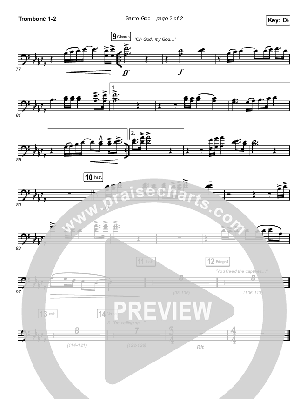 Same God Trombone Sheet Music PDF (Elevation Worship / Jonsal Barrientes)