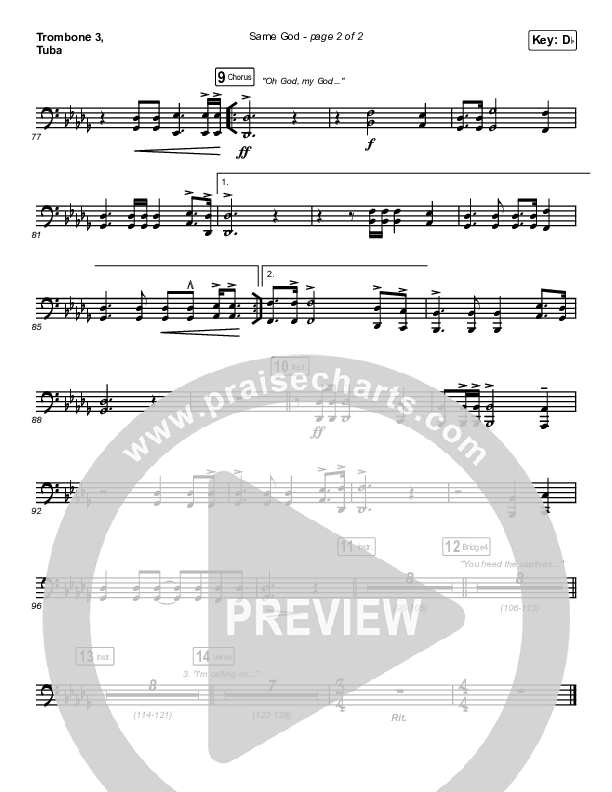 Same God Trombone/Tuba Sheet Music PDF (Elevation Worship / Jonsal Barrientes)