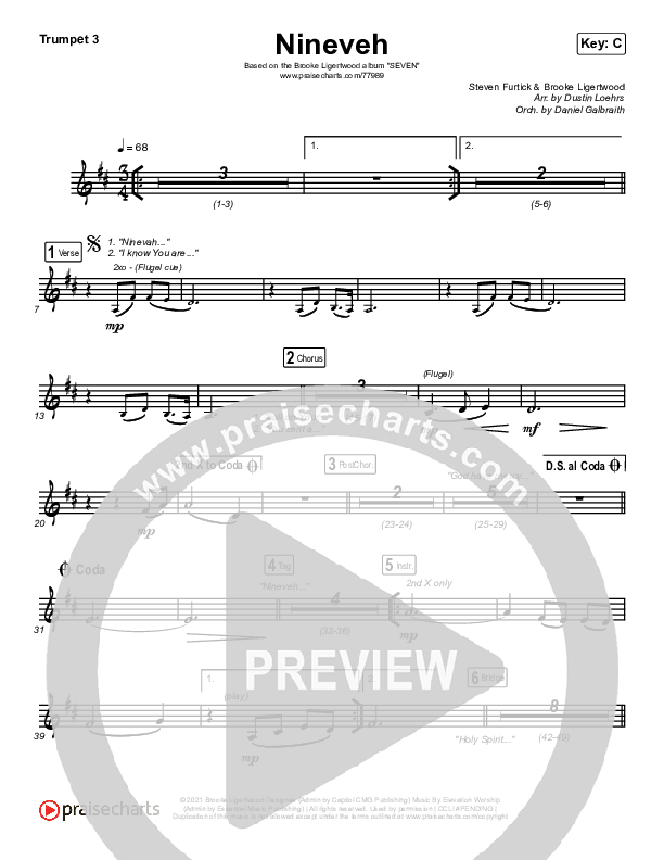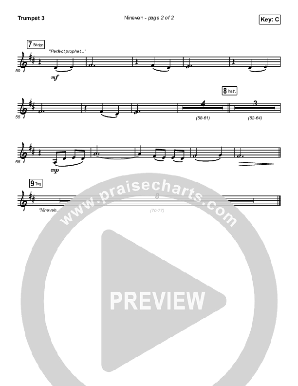 Download the Trumpet 3 sheet music for Nineveh by Brooke Ligertwood, from the album Nineveh. This song was arranged by Dustin Loehrs / Daniel Galbraith in the key of C, D.