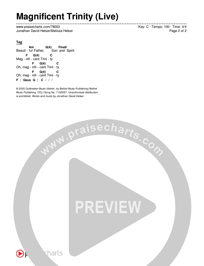Magnificent Trinity (Live) Chords PDF (Jonathan David Helser / Melissa Helser)