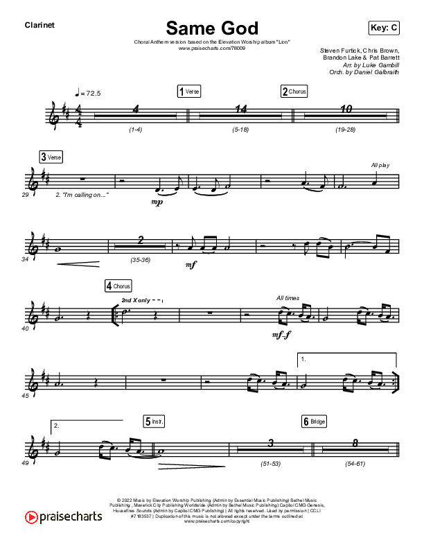 Download the Orchestration for Same God (Choral Anthem SATB) by Elevation Worship / Jonsal Barrientes / Arr. Luke Gambill, from the album Same God. This song was arranged by Luke Gambill in the key of C.