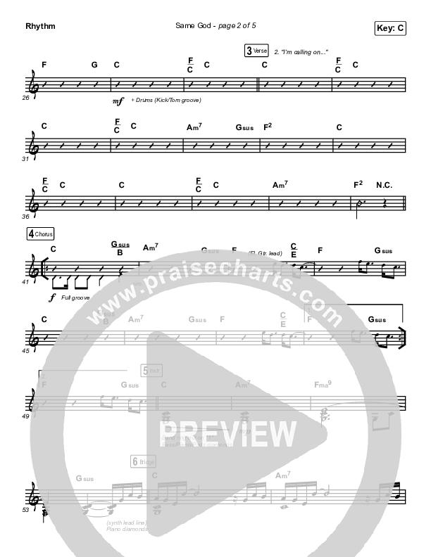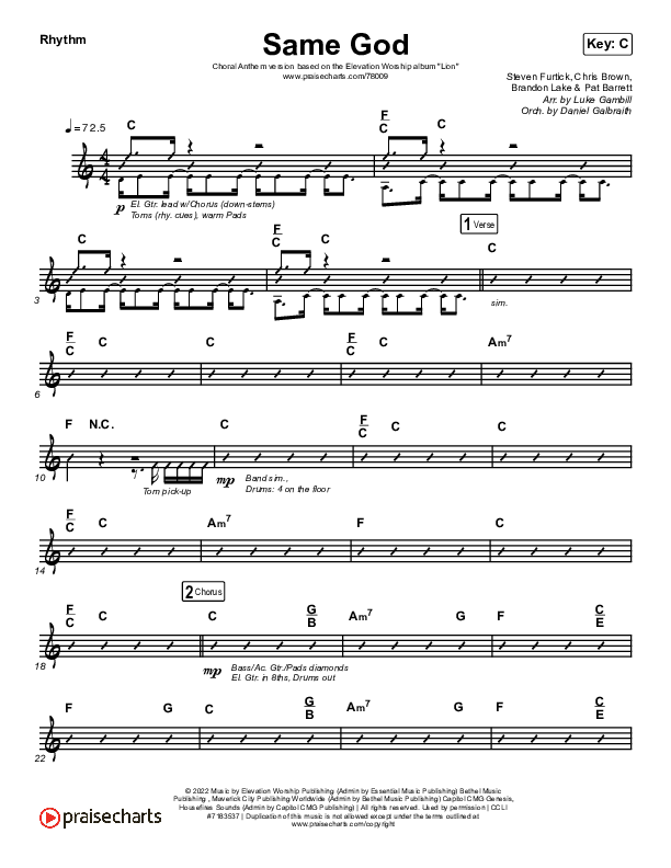 Download the Rhythm Chart for Same God (Choral Anthem SATB) by Elevation Worship / Jonsal Barrientes / Arr. Luke Gambill, from the album Same God. This song was arranged by Luke Gambill in the key of C.