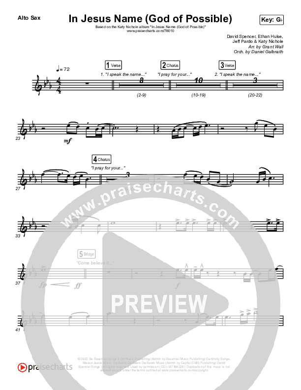 In Jesus Name (God Of Possible) Alto Sax Sheet Music PDF (Katy Nichole)