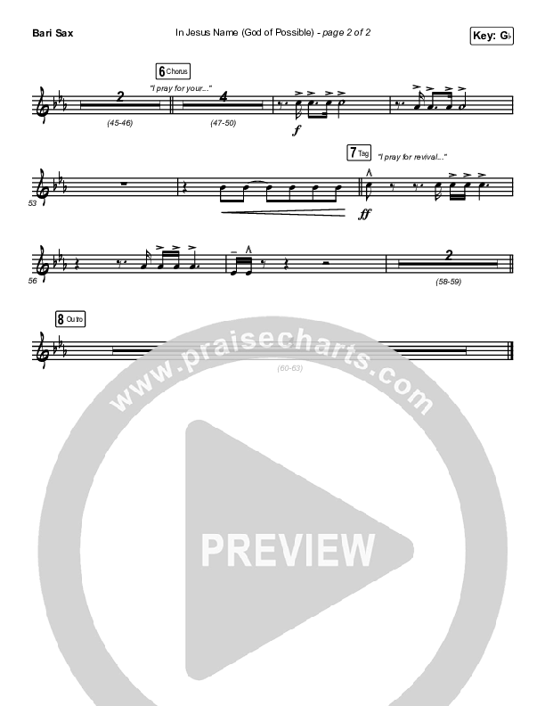 In Jesus Name (God Of Possible) Bari Sax Sheet Music PDF (Katy Nichole)
