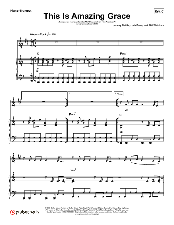Download the trumpet sheet music for This Is Amazing Grace (Instrument Solo) by Phil Wickham, from the album The Ascension.