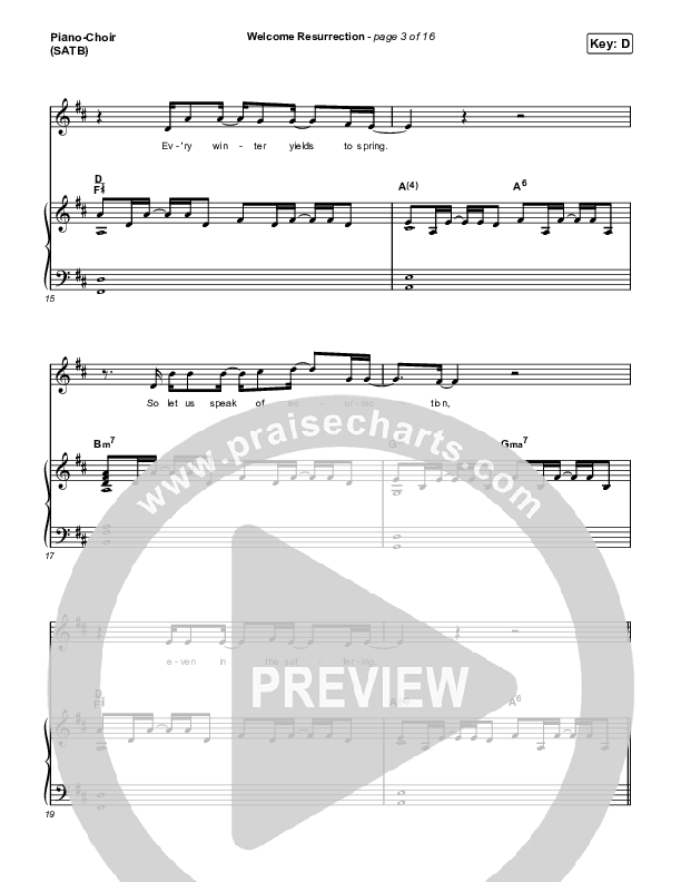 Download the PDF sheet music for Welcome Resurrection by Elevation Worship / Chris Brown, from the album LION. This song was arranged by Dustin Loehrs / Grant Wall / Daniel Galbraith in the key of C, D.