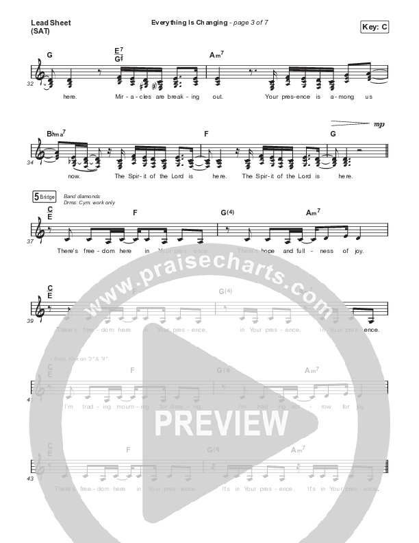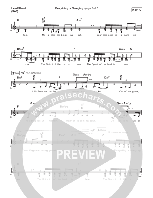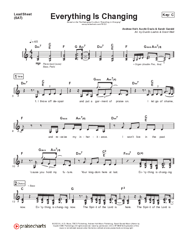 Download the sheet music for Everything Is Changing (Live) by The Belonging Co / Shantrice Laura, from the album Here. This song was arranged by Dustin Loehrs / Grant Wall in the key of C, D.