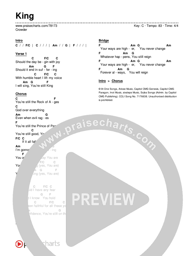 Download the PDF Chord Charts for King by Crowder, from the album Milk & Honey (Deluxe).