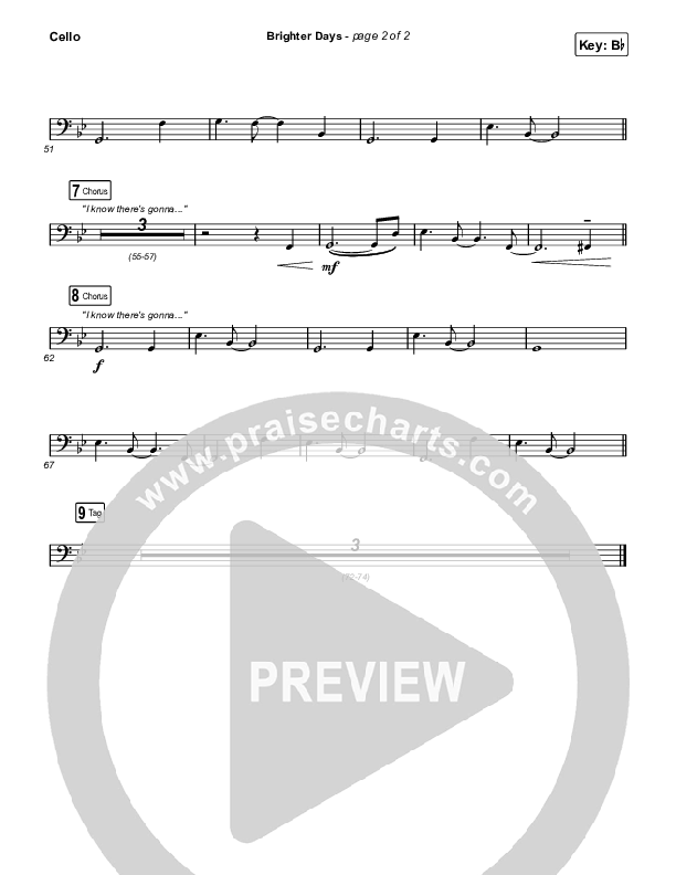 Download the Cello sheet music for Brighter Days by Blessing Offor, from the album My Tribe. This song was arranged by Daniel Galbraith in the key of A, Bb.