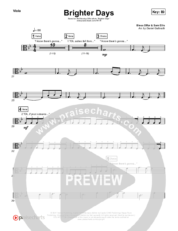 Download the Viola sheet music for Brighter Days by Blessing Offor, from the album My Tribe. This song was arranged by Daniel Galbraith in the key of A, Bb.