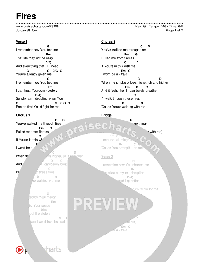 Download the PDF Chord Charts for Fires by Jordan St. Cyr, from the album Fires.