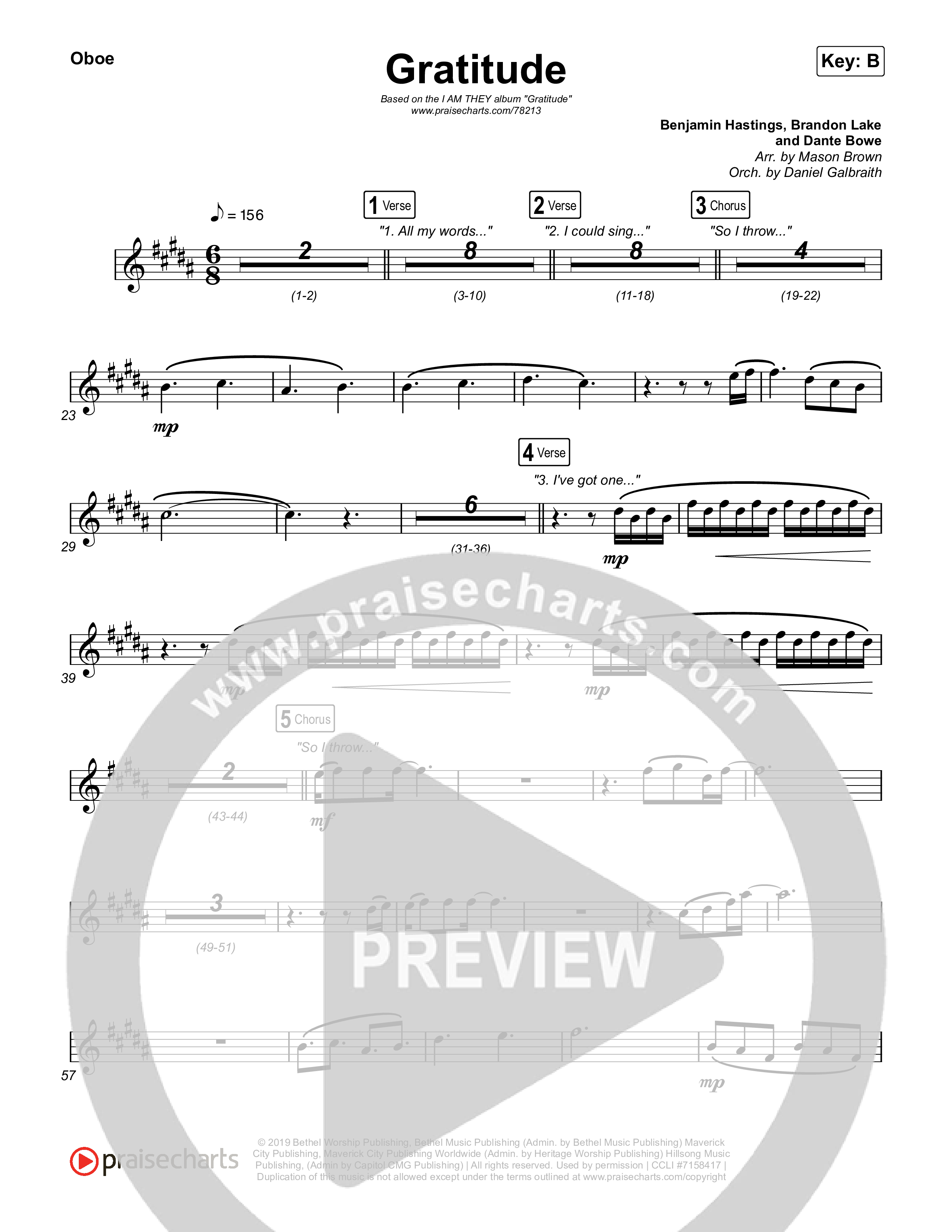 Download the Oboe sheet music for Gratitude by I Am They / Cheyenne Mitchell, from the album Chapel Sessions. This song was arranged by Mason Brown / Daniel Galbraith in the key of A, B.