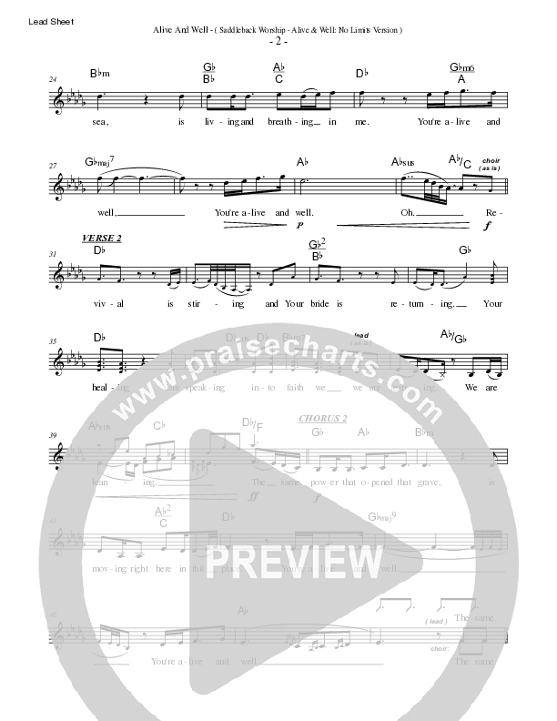 Download the sheet music for Alive & Well (No Limits) by Saddleback Worship, from the album Alive + Well: No Limits.