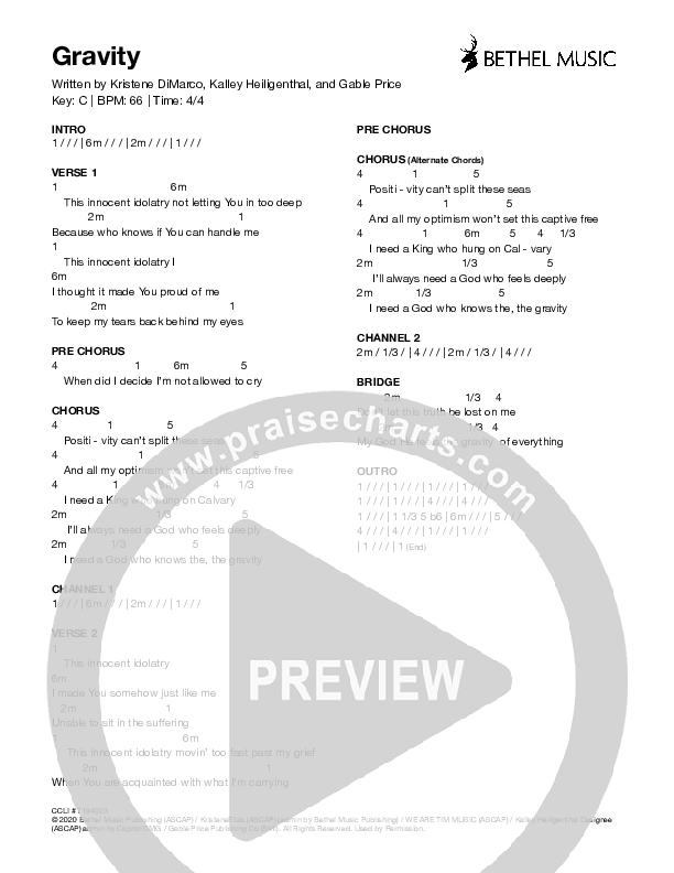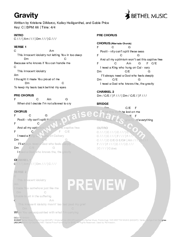 Download the PDF Chord Charts for Gravity by Kristene DiMarco, from the album The Field.