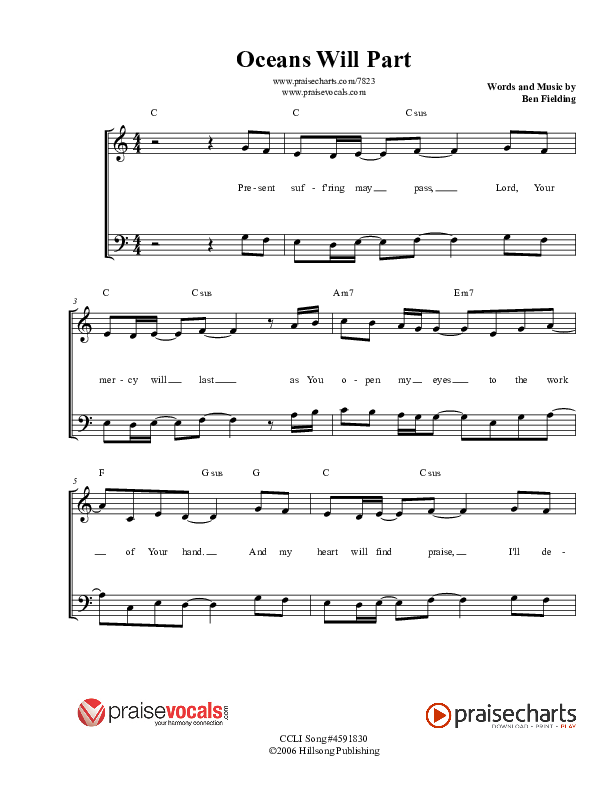 Download the sheet music for Oceans Will Part by PraiseVocals, from the album PraiseVocals Collection. This song was arranged by Patrick DeRemer in the key of C.