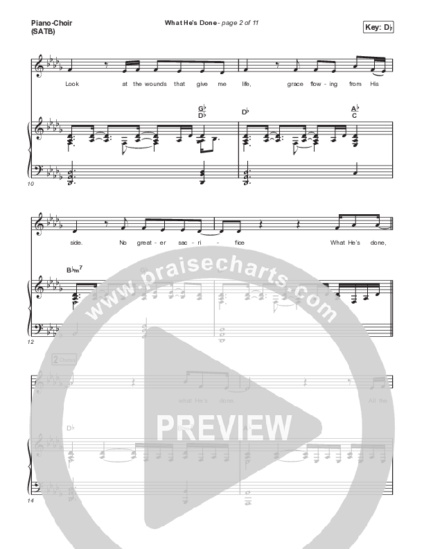 Download the sheet music for What He's Done (Acoustic) by Passion, from the album What He's Done EP. This song was arranged by Grant Wall in the key of D, Db.