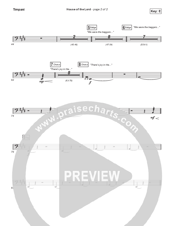 Download the Timpani sheet music for House Of The Lord (Unison/2-Part Choir) by Signature Sessions / Arr. Mason Brown, from the album House Of The Lord (Signature Sessions). This song was arranged by Mason Brown in the key of E.