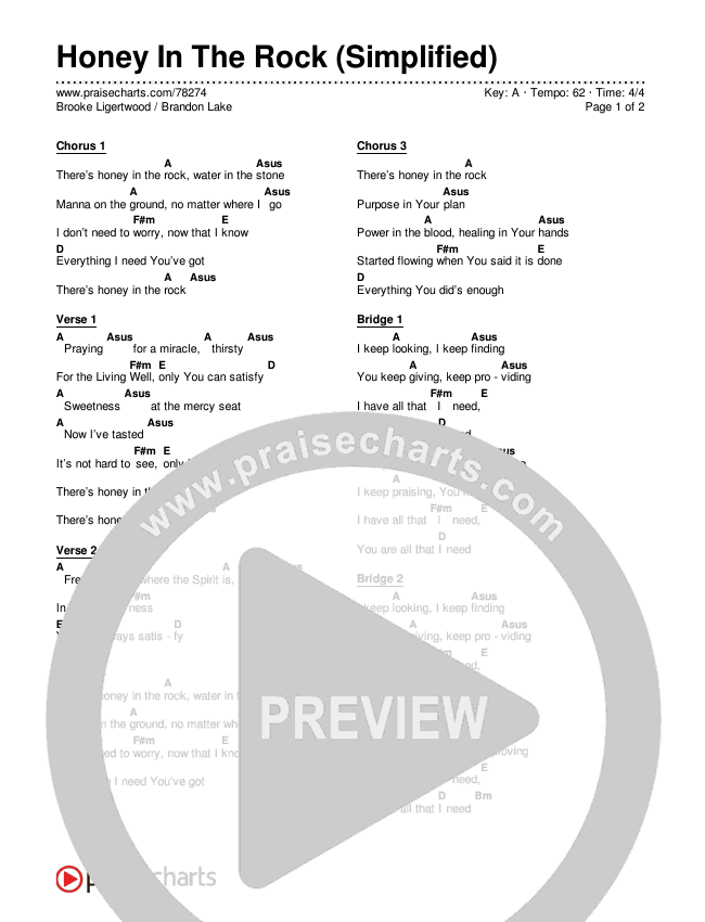 Download the PDF Chord Charts for Honey In The Rock (Simplified) by Brooke Ligertwood / Brandon Lake, from the album Simplified Worship.