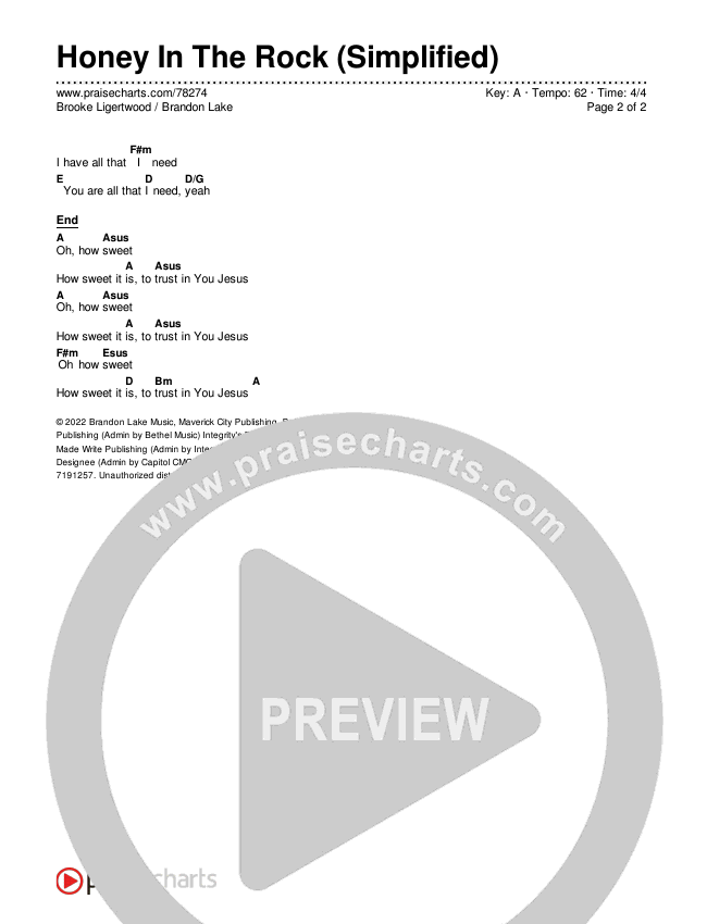 Honey In The Rock (Simplified) Chords PDF (Brooke Ligertwood / Brandon Lake)