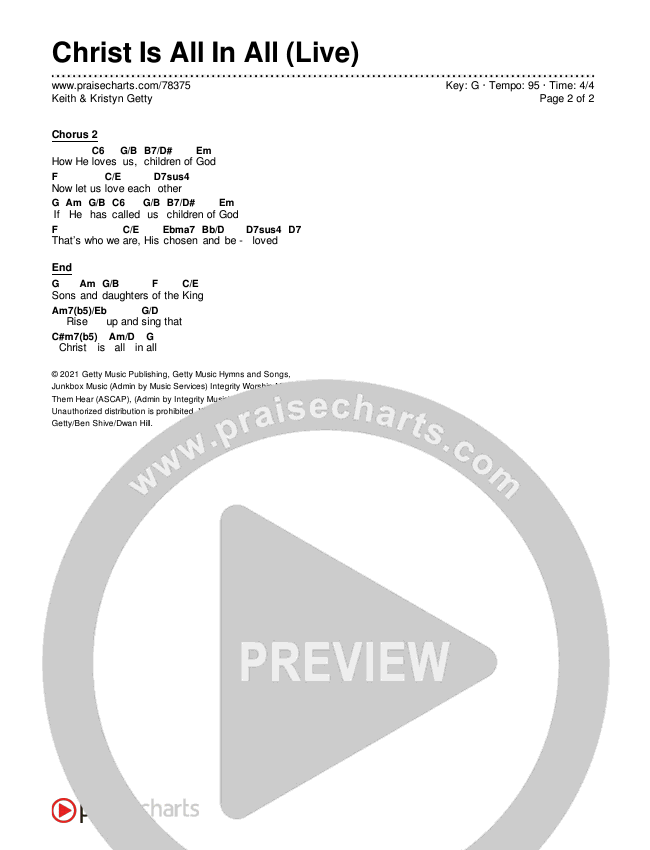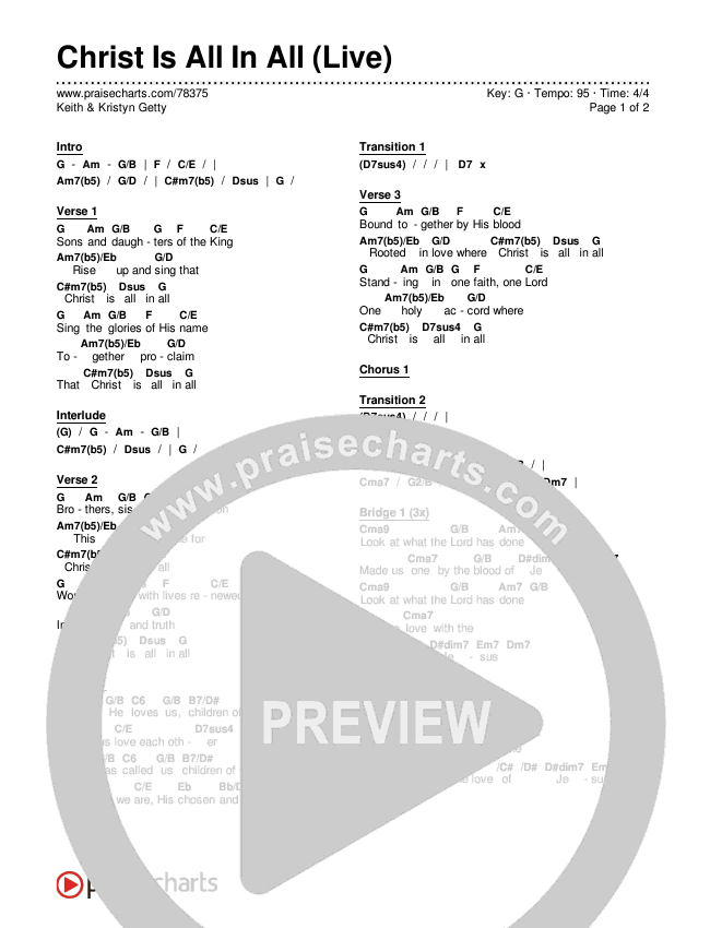Christ Is All In All (Live) Chords PDF (Keith & Kristyn Getty)