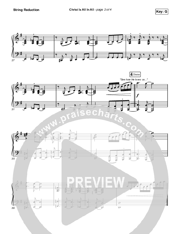 Download the String Reduction sheet music for Christ Is All In All (Live) by Keith & Kristyn Getty, from the album Sing! In Christ Alone - Live At The Getty Music Worship Conf. This song was arranged by Grant Wall / Daniel Galbraith in the key of Ab, G.