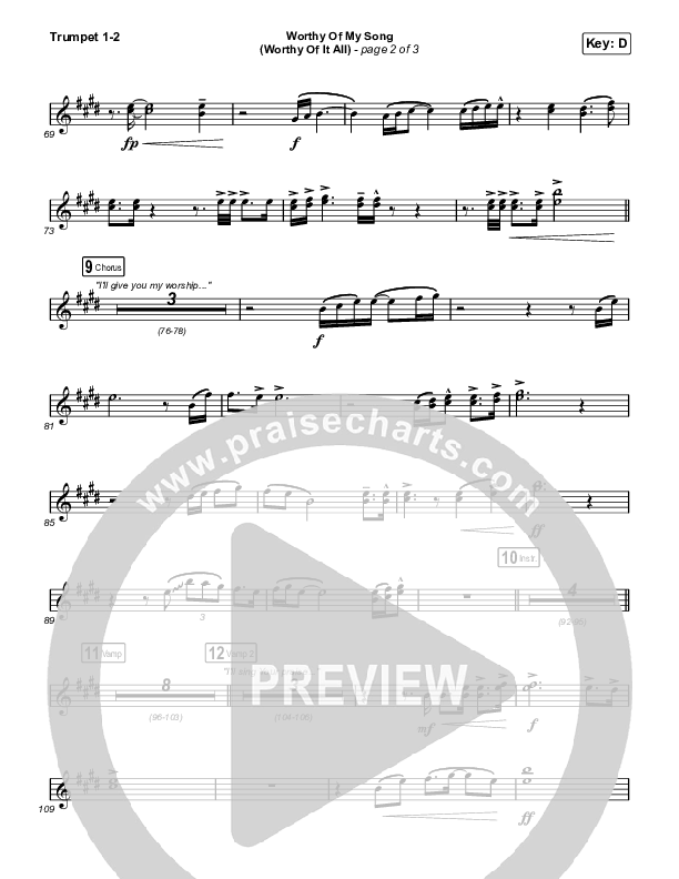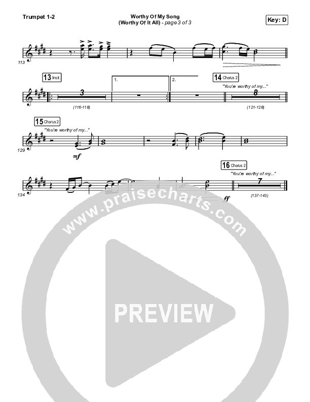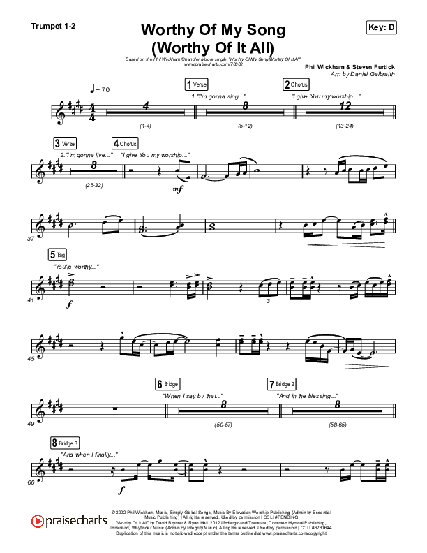 Worthy Of My Song (Worthy Of It All) Trumpet Sheet Music PDF (Phil Wickham / Chandler Moore)