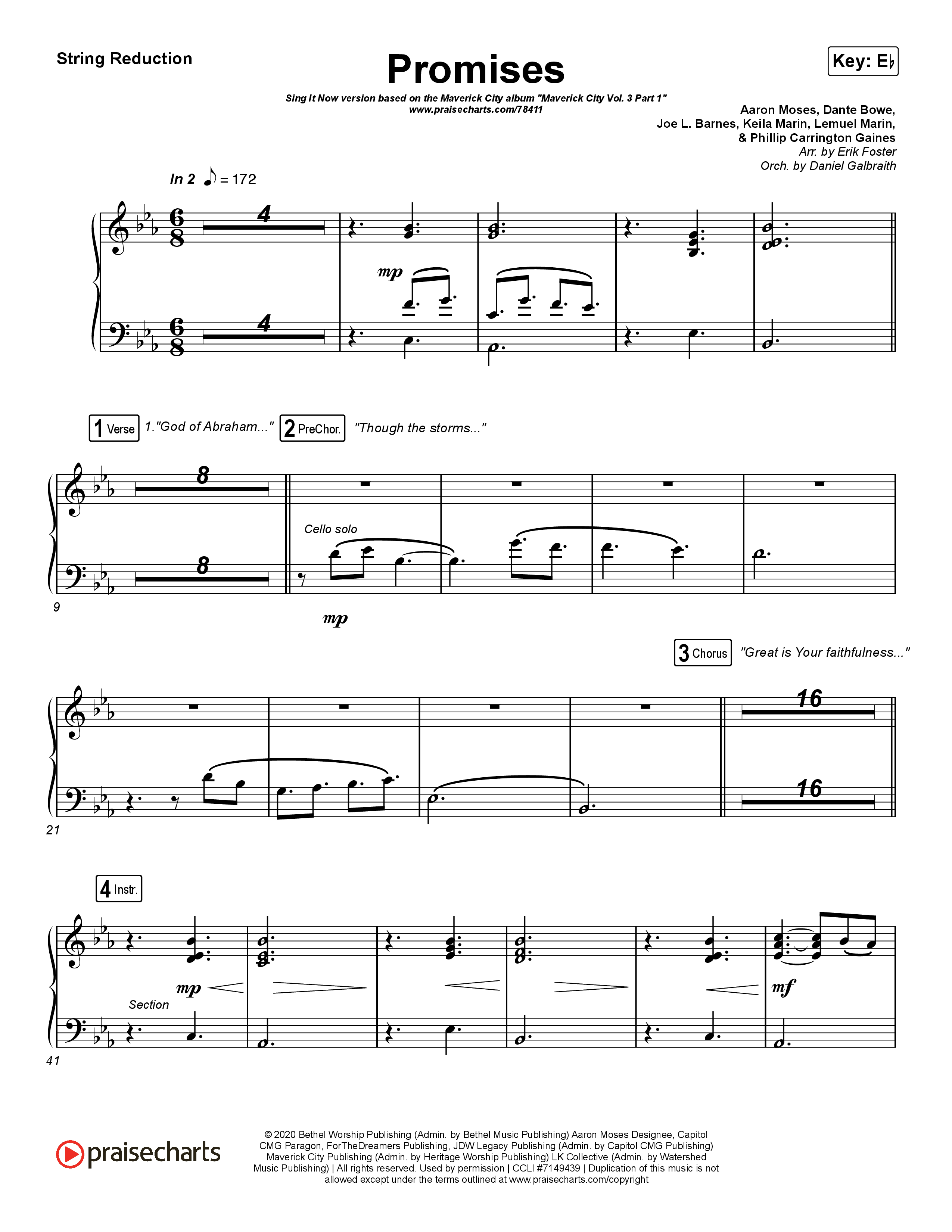 Download the String Reduction sheet music for Promises (Sing It Now SATB) by Maverick City Music / Arr. Erik Foster, from the album Maverick City Vol 3 Part 1. This song was arranged by Erik Foster / Luke Gambill / Daniel Galbraith in the key of Eb.